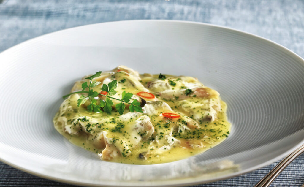 Ingredientes principales: Merluza, ajo, perejil fresco, vino blanco y caldo de pescado.